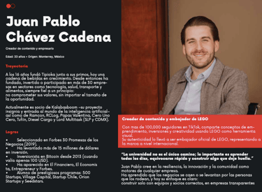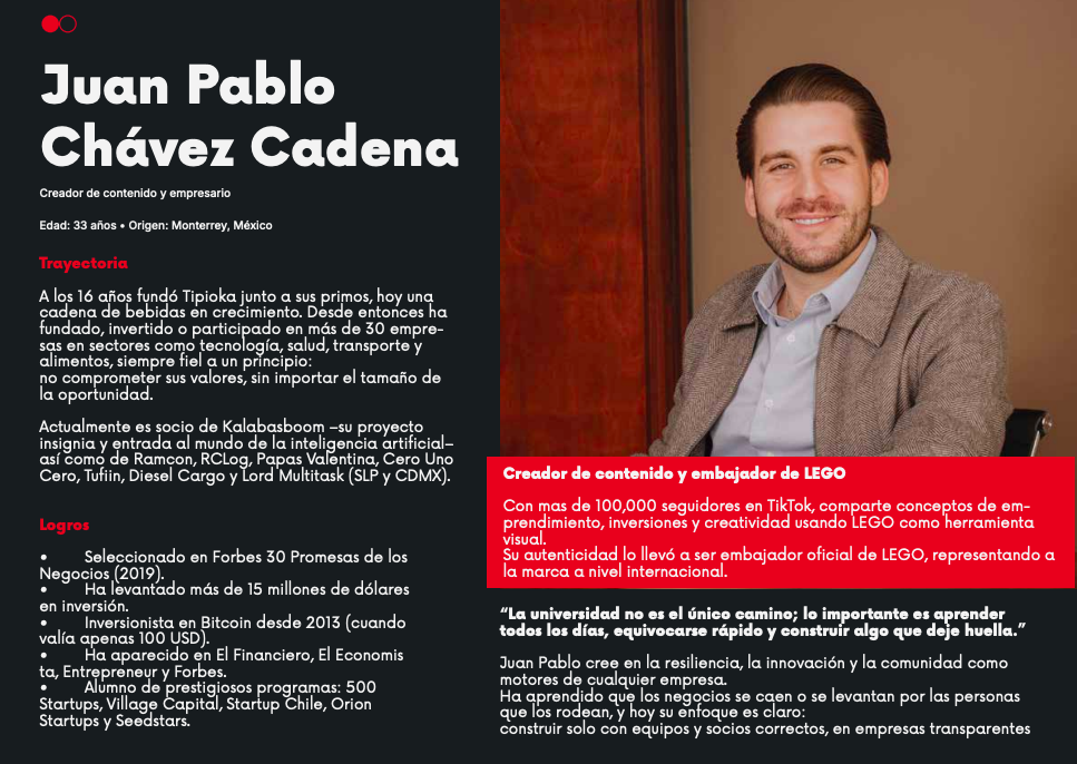 Con más de 100,000 seguidores en TikTok, comparte emocionantes conceptos de emprendimiento, inversiones y creatividad utilizando LEGO como herramienta visual.